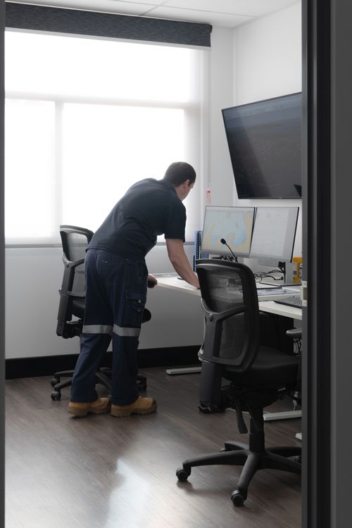 We enjoyed studying the tugs themselves, and this enthusiasm is reflected in the design. The curved roof is reminiscent of a hull, while the red, black, and white palette draws directly from the vessels. Each post and beam at the entry is named after a different tug operating in the port, welcoming visitors into Svitzer’s Newcastle HQ and connecting them to the fleet. Inside the simulator, visitors experience what it means to be a tug-master.